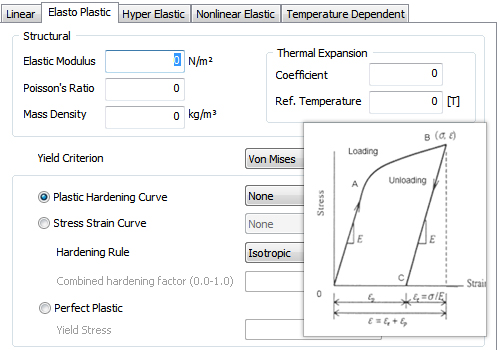 Based on the caracteristics, materials can be further divided in to linear, elasto plastic, hyper elastic, nonlinear elastic and temperature dependent materials.