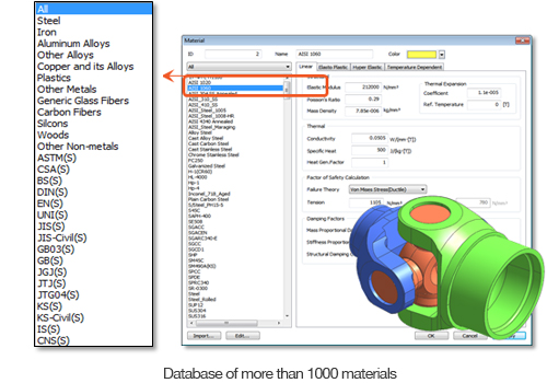 Midas NFX provides a database of more than 1000 linear material models, which helps to simulate behavior of almost any kind of material.