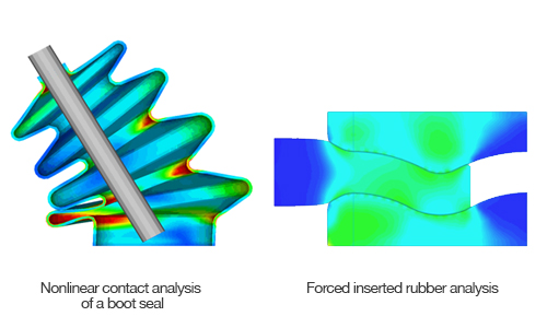 midas NFX support different types of Hyper-elastic models to simulate rubbers (Mooney-Rivlin, Ogden, Blatz-Ko, etc.)